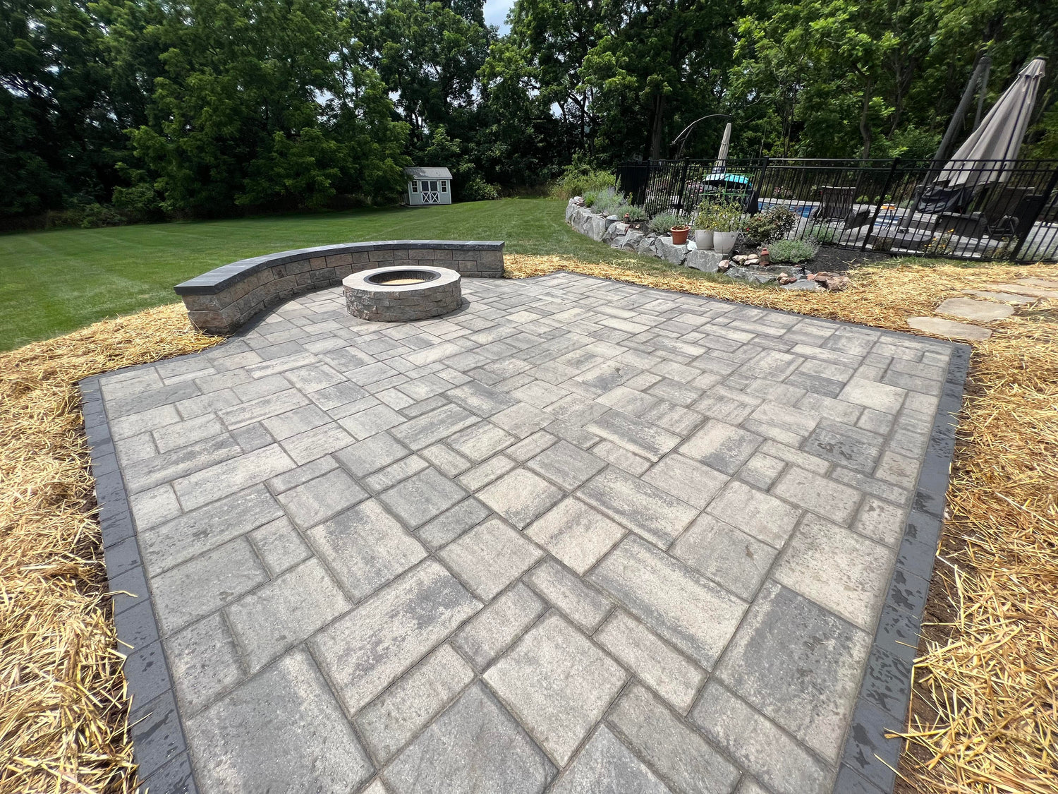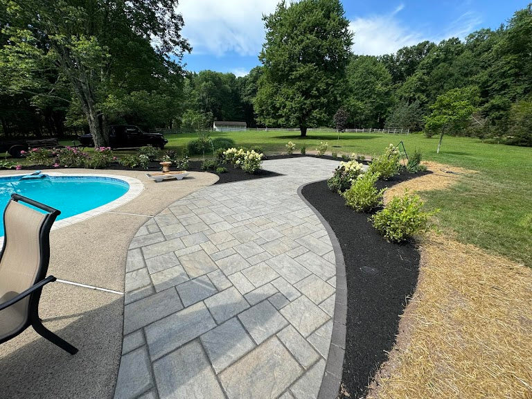 Poolside paver patio with garden installation. Quakertown PA.