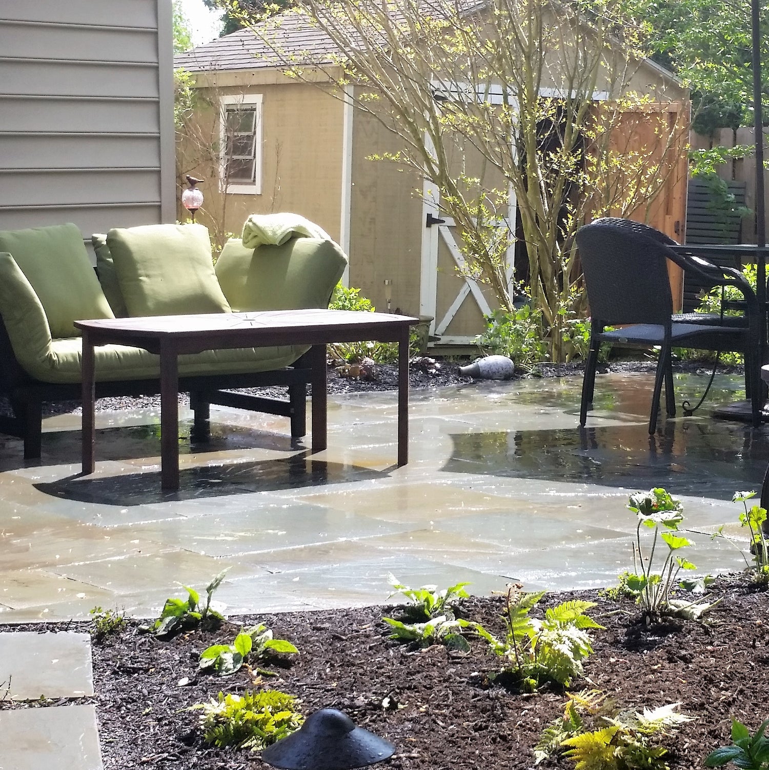 Flagstone patio and garden installation. Ottsville, PA.