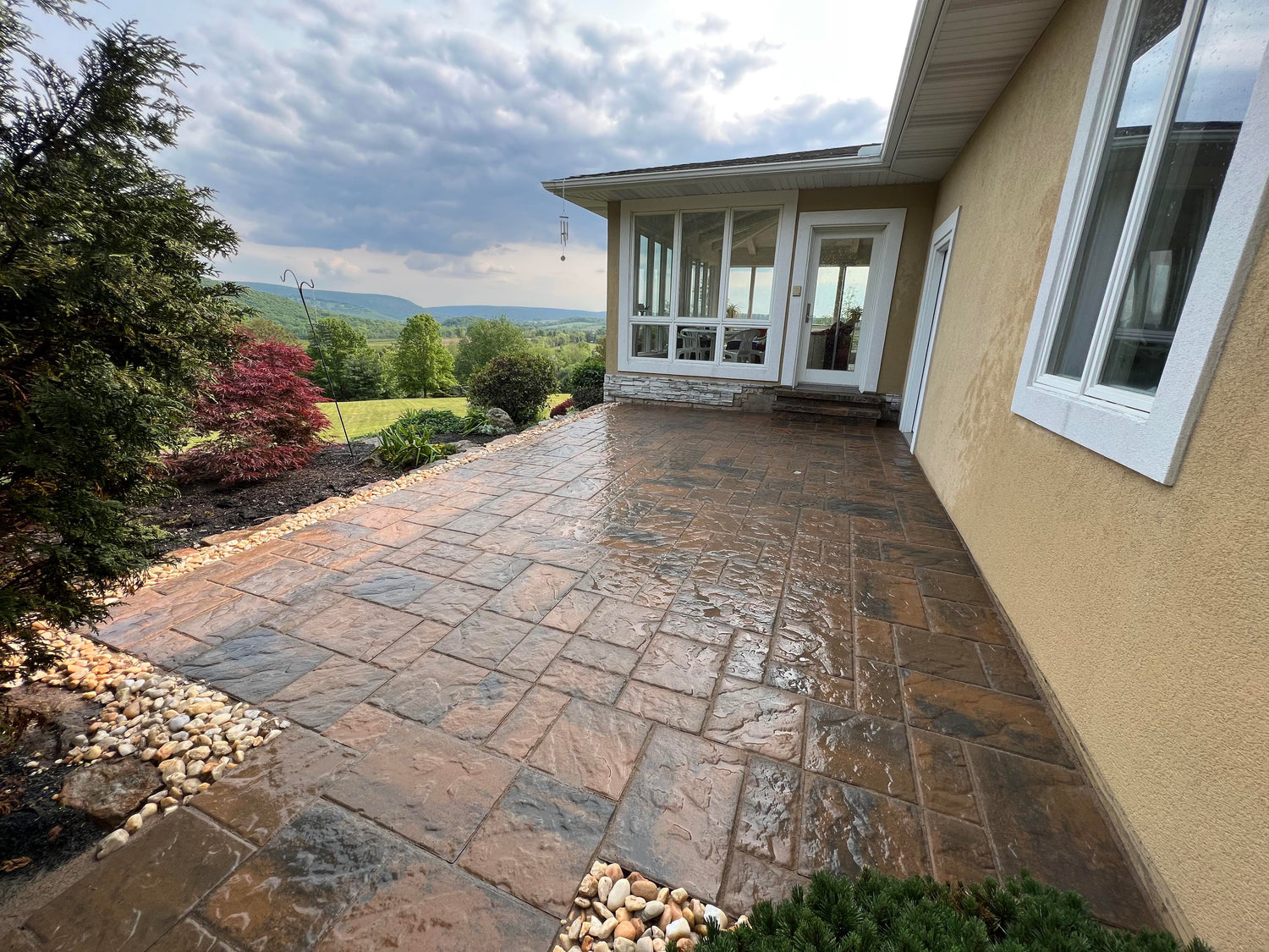 Sandlewood paver patio with step installation and a gorgeous view! Hamburg, PA.
