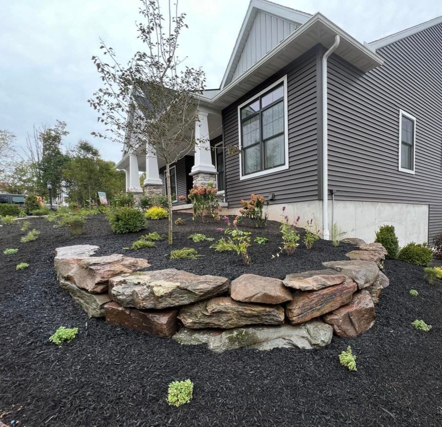 Full garden installation complete with boulder wall. Bethlehem, PA.